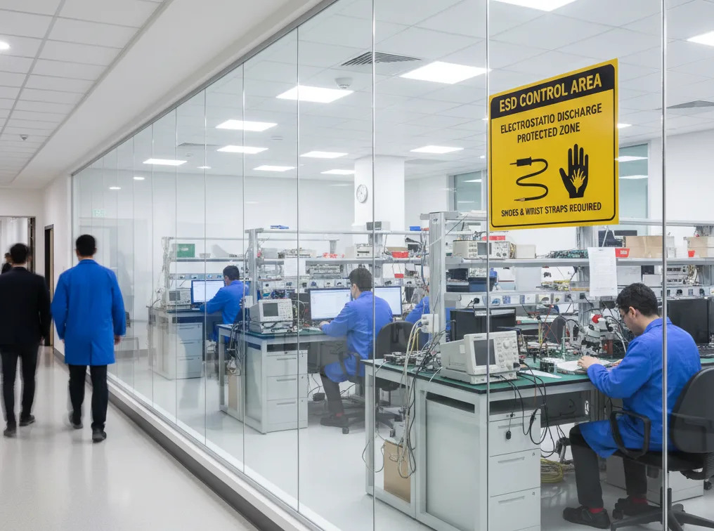 Un audit ESD permet de vérifier la résistivité des sols et tapis, l’efficacité des protections individuelles (chaussures, blouses, bracelets) et la bonne signalisation des zones protégées.