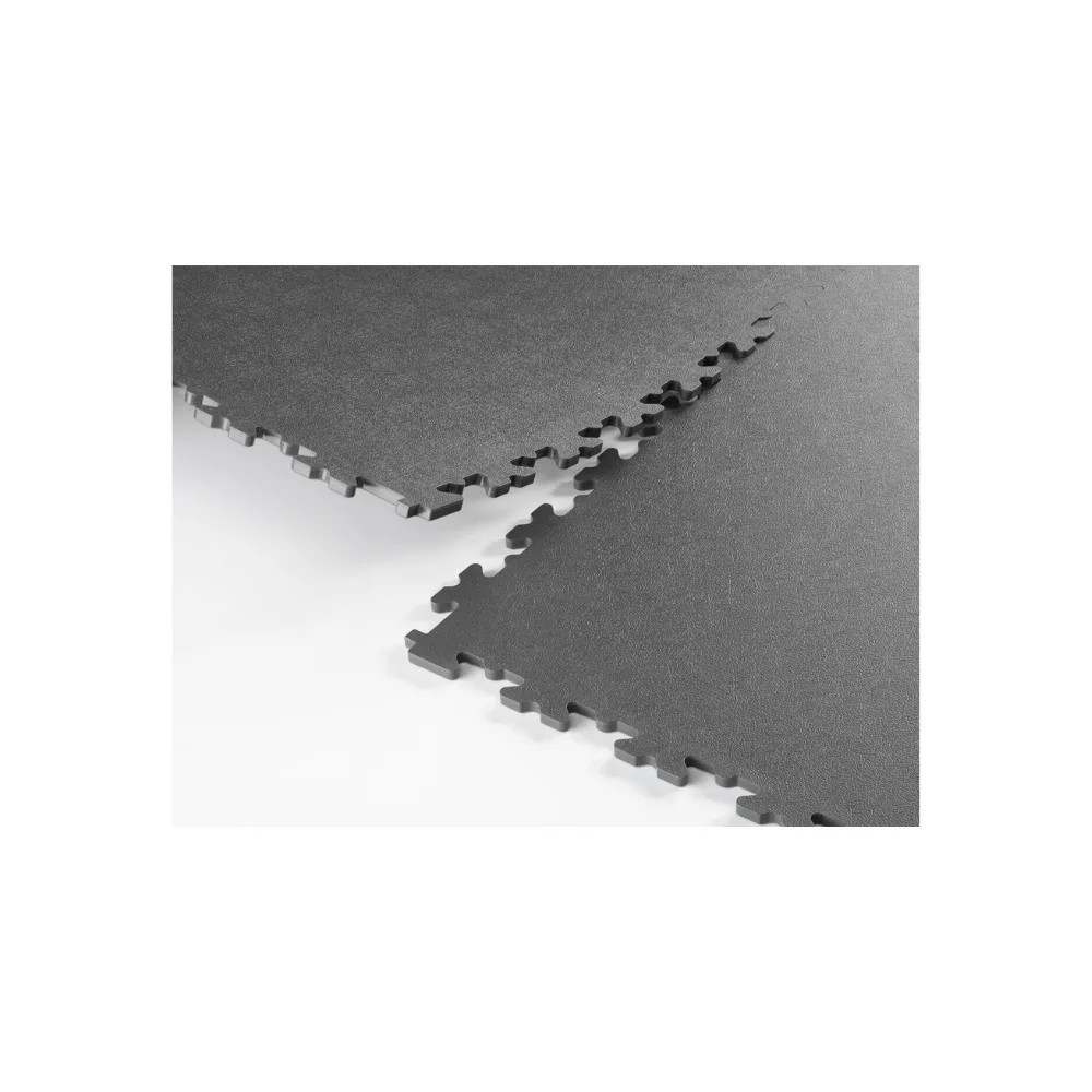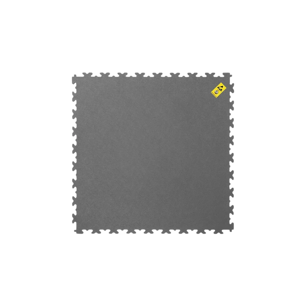 Les revêtements de sol ESD sont disponibles en dalles de 5mm ou de 7mm d’épaisseur. Les dalles de 5mm d’épaisseur sont recommandées pour des utilisations moins intenses avec seulement des palettes légères et une circulation modérée tandis que les dalles de 7mm d’épaisseur sont adaptées à la circulation répétée de véhicules lourds comme les chariots élévateurs. Les dalles ESD sont fabriquées grâce à un procédé de moulage par injection au cours duquel des milliers de minuscules fibres de métal sont ajoutées au mélange PVC. Cette méthode assure que les fibres soient régulièrement réparties au sein de chaque dalle afin de garantir leur performance ESD constante.