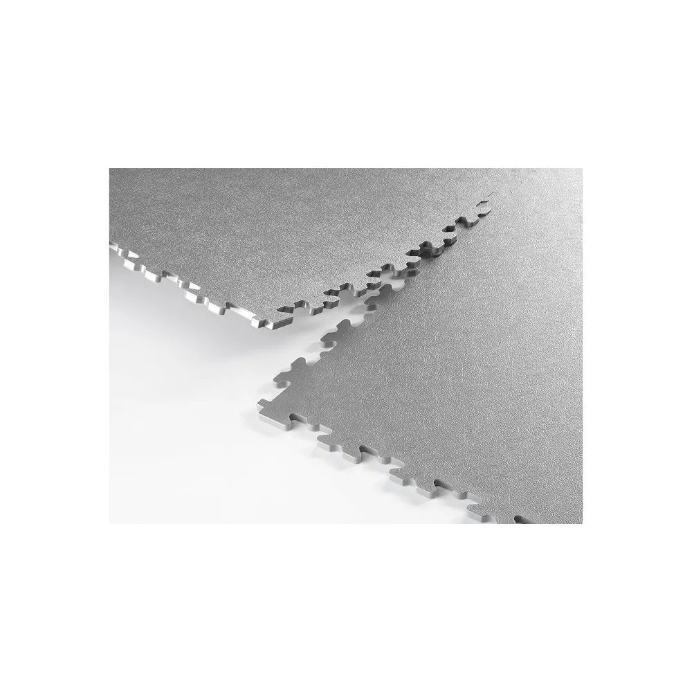 Les revêtements de sol ESD sont disponibles en dalles de 5mm ou de 7mm d’épaisseur. Les dalles de 5mm d’épaisseur sont recommandées pour des utilisations moins intenses avec seulement des palettes légères et une circulation modérée tandis que les dalles de 7mm d’épaisseur sont adaptées à la circulation répétée de véhicules lourds comme les chariots élévateurs. Les dalles ESD sont fabriquées grâce à un procédé de moulage par injection au cours duquel des milliers de minuscules fibres de métal sont ajoutées au mélange PVC. Cette méthode assure que les fibres soient régulièrement réparties au sein de chaque dalle afin de garantir leur performance ESD constante.