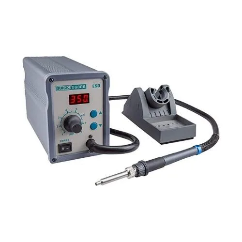 Cette station convient bien à tous les travaux fins pour la majorité des petits composants CMS. Très compacte et équipée d’un manche très léger, elle est livrée complète, prête à l’emploi, avec 5 buses. La régulation de la température est contrôlée par microprocesseur en boucle fermée. La prise et la dépose du manche dans son socle déclenchent automatiquement la mise en chauffe et le passage en mode veille, ce qui augmente considérablement la durée de vie du corps de chauffe et limite le risque d’incidents de chauffe inappropriée.